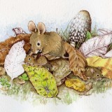 And you know with mice…where there’s one there’s many!…so I added this baby on the right. It’s good for the composition because it leads your eye around the page. Keep this in mind too when arranging your leaves, all the curves, waves and curls can really be exciting to draw and look at as they lead your eye around the composition.