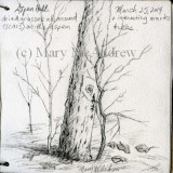 I did sketches of it on cold snowy days, while it hung in the tree, disguised as dead leaves.