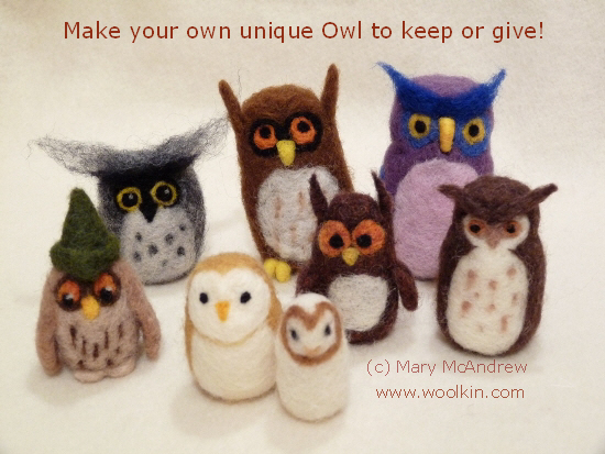 In Class 1 you will make one Colourful Critter of your choice and all materials are included in the fee. The optional follow-up Class 2 is Half Price and you just pay for wool you use in class. It’s inexpensive for each little project so you may want to make a bunch! Optional follow-up class 2 is a great opportunity to ask questions, get help on projects you tried at home and gives me the opportunity to make sure you get lots of extra attention! Sign up for one or all classes! Secure your place to learn creative techniques with artist Mary McAndrew. Email me for details and to secure your place.
