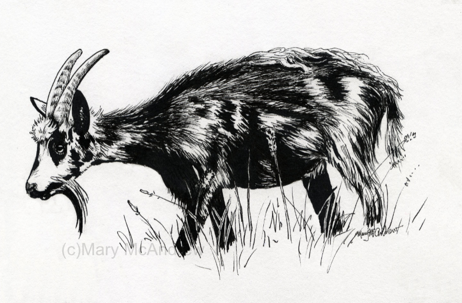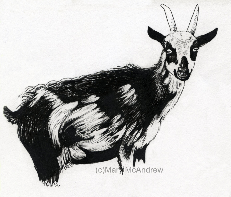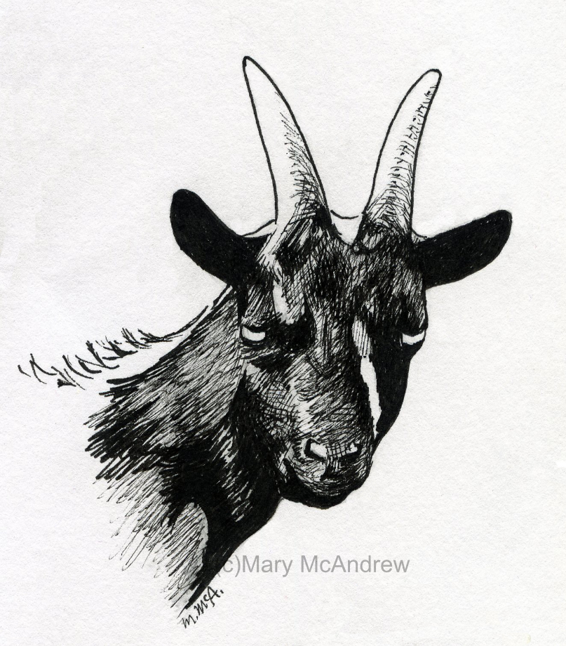 This little sketch is actually that nanny in the picture above, I tried to draw her without the leaves and I guess it worked. It’s a very small sketch, only about 1 1/2″.